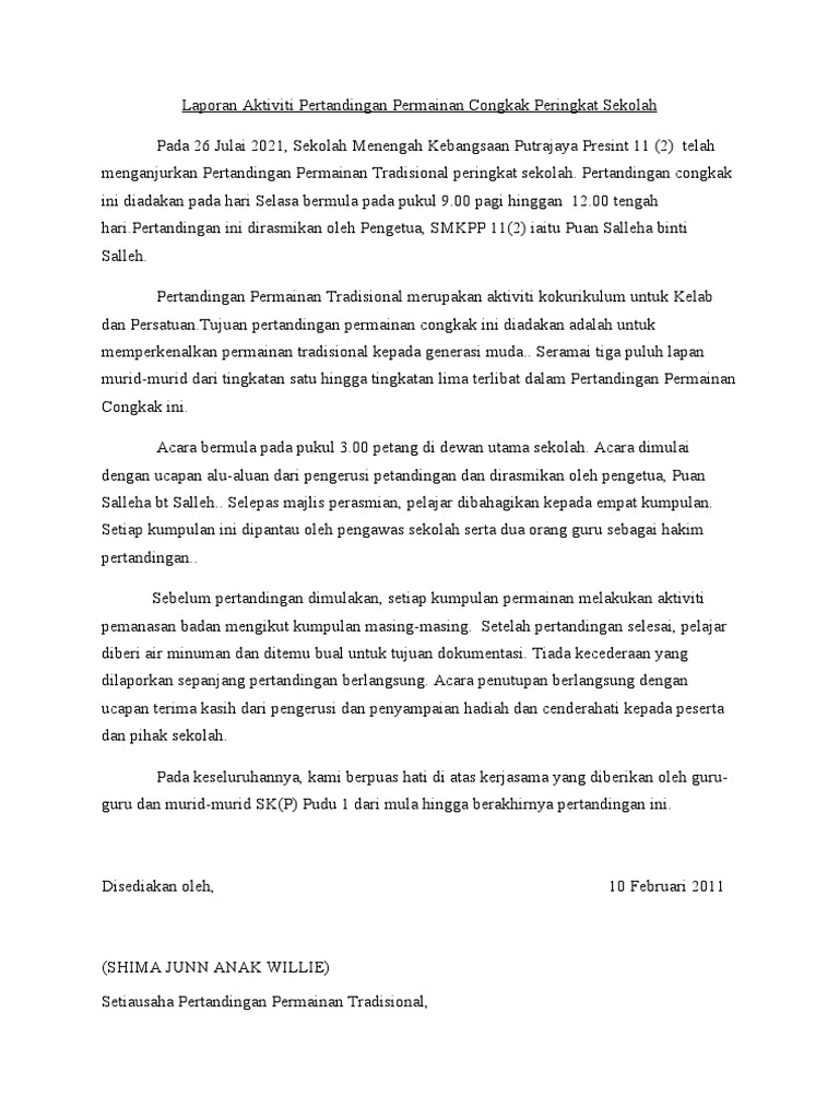 Contoh Karangan Laporang Tingkatan 1