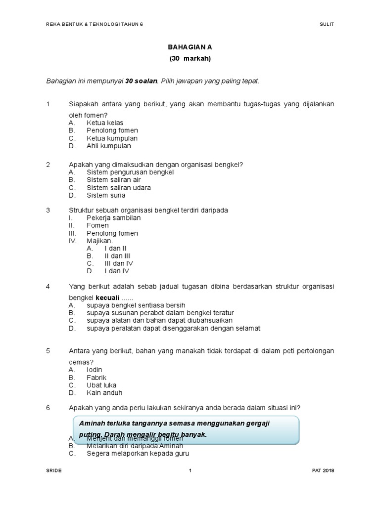 Soalan Peperiksaan Pertengahan Tahun 2018 Kssr Tahun 5 Reka Bentuk Dan Teknologi